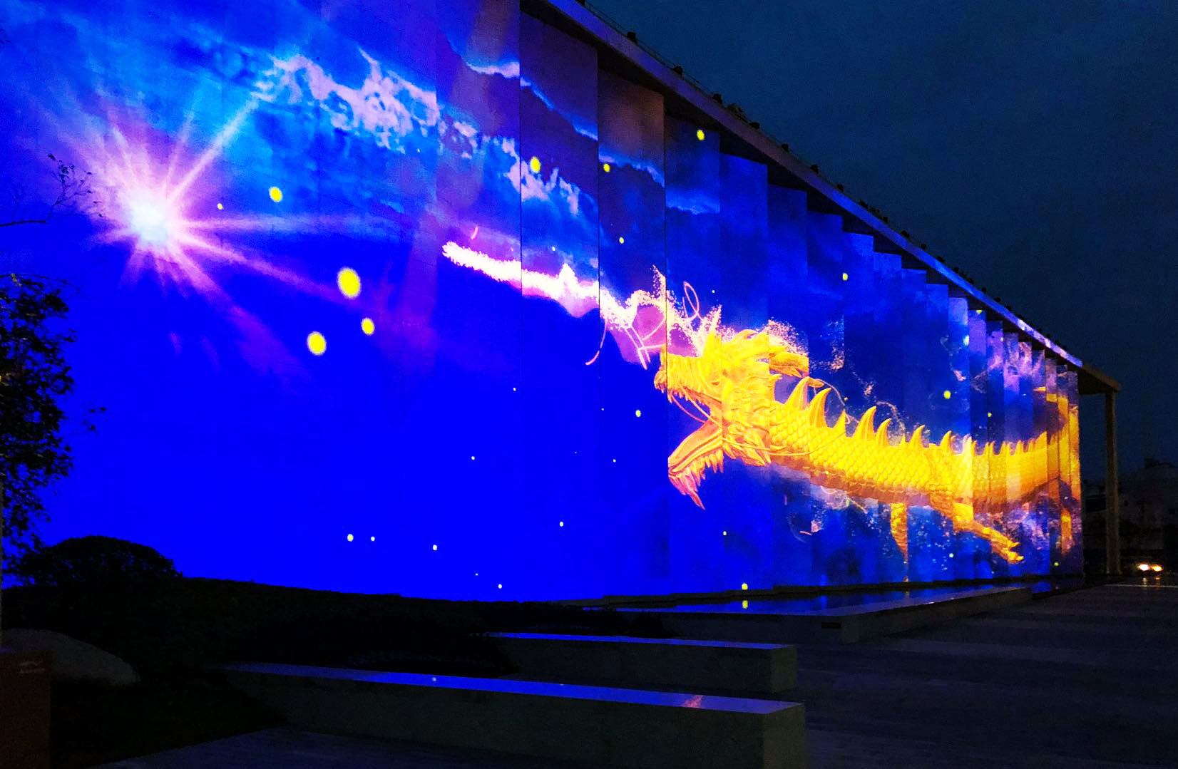 開放當(dāng)晚,斥資數(shù)千萬元打造的3D夢(mèng)幻燈光秀震撼開演。該表演由美盛地產(chǎn)集團(tuán)邀請(qǐng)國(guó)際頂尖專業(yè)團(tuán)隊(duì),以場(chǎng)館外墻為主體量身定制。配合著震撼律動(dòng)的音樂,燈光秀以啟迪、成長(zhǎng)、化蝶、騰龍四個(gè)篇章的3D魔變,為現(xiàn)場(chǎng)市民奉上了一場(chǎng)精彩的視聽盛宴。