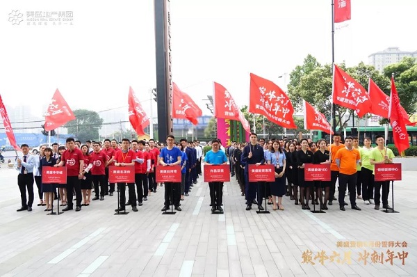 隆重的儀式、堅定的信心,美盛營銷各戰隊都展現出別具一格的團隊風采和誓師決心,更以全力以赴,創寫奇跡的姿態,顯示出不凡的榮耀鋒芒!六月攻勢,必定勢不可擋!迎戰2019,在全體營銷人的努力下,美盛將再續熱銷傳奇!