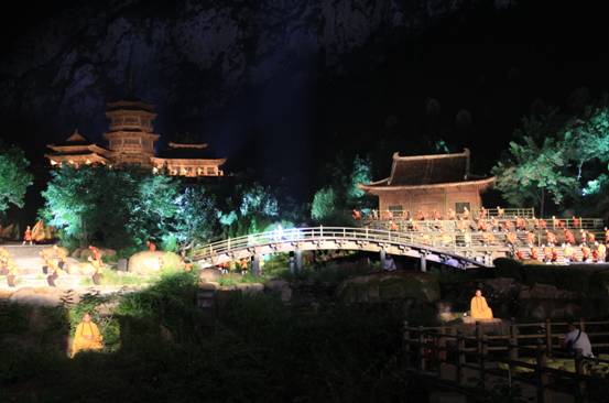 菩提本無樹,明鏡亦非臺(tái)。本來無一物,何處惹塵埃。晚餐結(jié)束后,一場(chǎng)絕美的視聽盛宴在等著大家,晚上8點(diǎn)10分禪宗少林音樂大典開演,大家一起傾聽禪樂,感受少林文化。光樂、琴音、歌聲、吟詠,將佛學(xué)禪宗文化闡釋的淋漓盡致,大家深深的被震撼并陶醉其中。