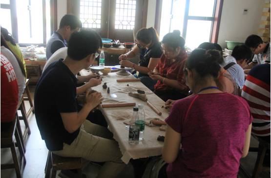 中午大家體驗(yàn)了過堂素齋,午休過后大家接著體驗(yàn)了陶藝和禪茶。