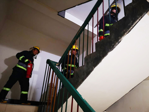 演習(xí)工作組分為:滅火行動組、現(xiàn)場警戒組、疏散引導(dǎo)組、設(shè)備保障組、人員救援組、交通秩序組、物資搶救組、后勤保障組、消控中心組,共計(jì)九個組。按職能分工,依次有序,做到滅火與救助的同時進(jìn)行,保證演習(xí)活動的順利進(jìn)行。