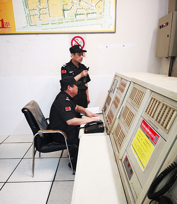 演習(xí)中,工作人員發(fā)現(xiàn)“火情”,監(jiān)控室接到火情警報(bào),呼叫巡邏崗確認(rèn)火情之后立即啟動消防應(yīng)急預(yù)案,消防員迅速跑步到現(xiàn)場,進(jìn)行滅火。
