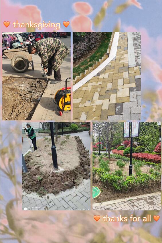 徐莊社區、廟李家園,一份安寧與清新,守護這份寧靜,項目全員進行綠化返青工作,雜草清理、利用廢棄材料進行綠化圍擋….